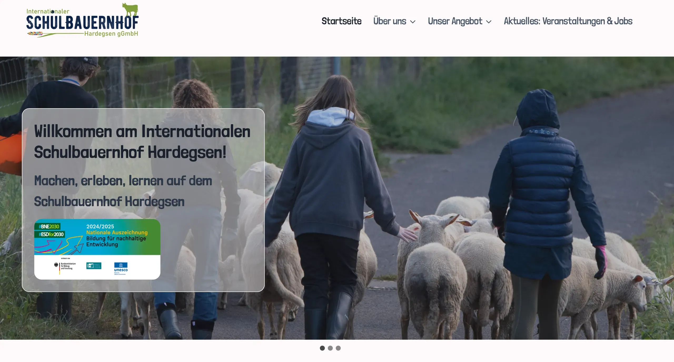 Der Internationale Schulbauernhof Hardegsen ist ein außerschulischer Lernort, an dem Landwirtschaft, Ernährung und Nachhaltigkeit ganz praktisch erlebt werden können. Unter dem Motto „machen – erleben – lernen“ arbeiten Kinder und Jugendliche aktiv im Hofalltag mit – versorgen Tiere, ernten Gemüse oder verarbeiten Lebensmittel und lernen so ökologische und gesellschaftliche Zusammenhänge direkt kennen. So kann beispielsweise bei der täglichen Stallarbeit Verantwortung übernommen oder beim gemeinsamen Kochen der Weg vom Feld auf den Teller nachvollzogen werden. Auch mehrtägige Aufenthalte und Projekte ermöglichen vertiefte Einblicke in nachhaltige Landwirtschaft und fördern Selbstständigkeit, Teamarbeit und ein Bewusstsein für einen verantwortungsvollen Umgang mit Ressourcen.