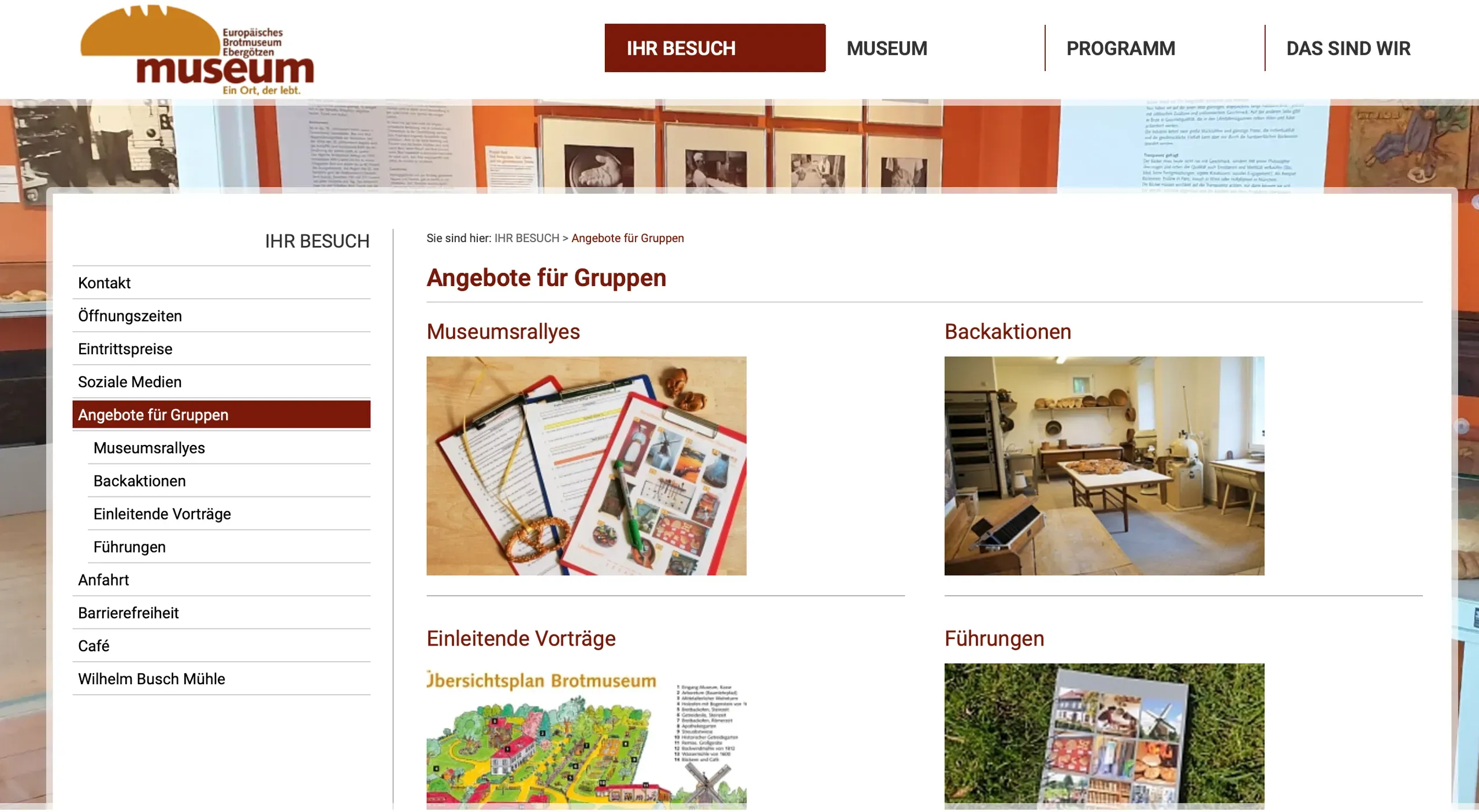 Das Europäisches Brotmuseum bietet anschauliche Bildungsangebote rund um Ernährung, Landwirtschaft und Kulturgeschichte des Brotes. In interaktiven Formaten erleben Kinder und Jugendliche den Weg „vom Korn zum Brot“ und setzen sich mit nachhaltiger Lebensmittelproduktion auseinander. So können sie bei Backaktionen selbst Teig herstellen, Brot formen und backen, während sie in Führungen oder Rallyes die Entwicklung von Getreideanbau, Müllerei und Bäckerhandwerk entdecken. Auch das Außengelände mit Mühlen, Gärten und historischen Backöfen macht ökologische Zusammenhänge und traditionelle Handwerkstechniken greifbar. Die Angebote verbinden praktisches Tun mit Wissen über Ernährung, Ressourcen und nachhaltiges Handeln.